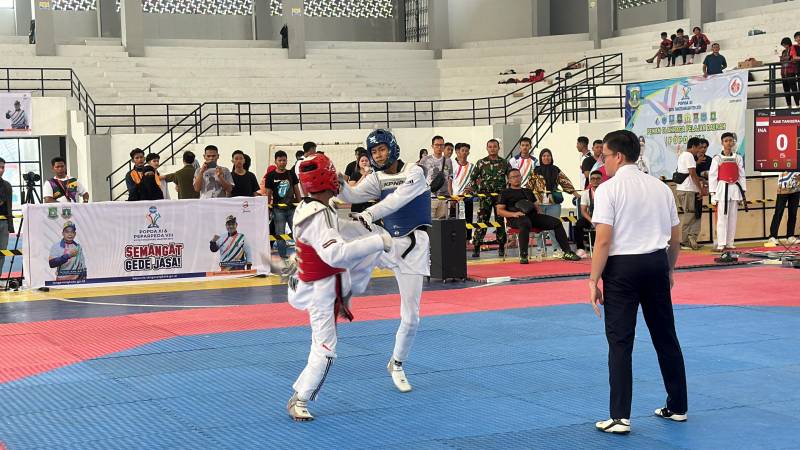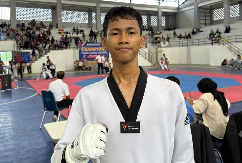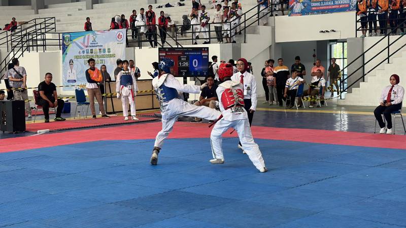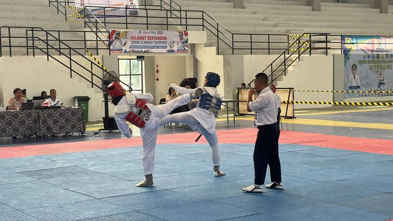 Mohamad Fajar salah satu atlet taekwondo Kota Tangerang pada Pekan Olahraga Pelajar Daerah (POPDA) XI Banten berhasil melaju ke babak final. Siswa SMA Negeri 5 Kota Tangerang ini bertanding dikelas partai under 45 putra junior. Pria 17 tahun ini lolos kebabak final usai mengalahkan kontingen Kabupaten Tangerang di GOR Nambo Jaya, Karawaci, Selasa (11/6/2024).