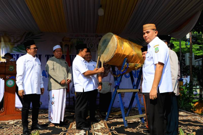 Penjabat (Pj) Wali Kota Tangerang, Dr. Nurdin, membuka gelaran Seleksi Tilawatil Qur'an (STQ) tingkat Kecamatan Cipondoh yang ditandai dengan pemukulan bedug, yang berlangsung di halaman Kantor Kecamatan Cipondoh, Kota Tangerang, Rabu (19/6).