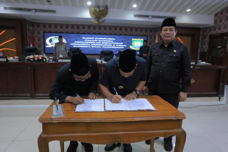 Sebanyak lima Rancangan Peraturan Daerah (Raperda) yang diajukan oleh Pemerintah Kota (Pemkot) Tangerang, resmi ditetapkan menjadi Peraturan Daerah (Perda) oleh DPRD Kota Tangerang.
