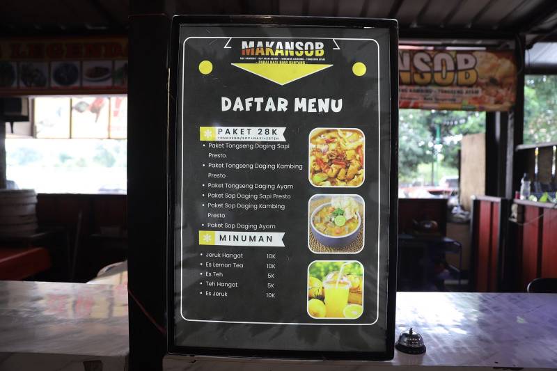 MakanSob menyediakan tongseng dengan daging sapi, daging kambing, dan juga daging ayam. Selain itu, ada juga Sop Ayam Keruh yang kaya dengan kuah kaldu. Ke depannya, MakanSob juga akan menghadirkan Nasi Goreng Kambing Rempah dan juga Iga Penyet.