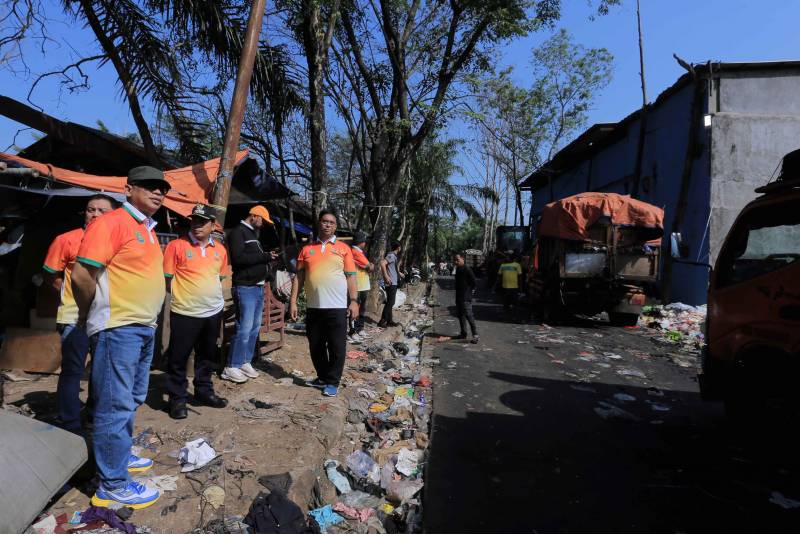 Didampingi oleh Kepala Dinas Lingkungan Hidup Wawan Fauzi beserta jajaran, Pj Wali Kota mengecek langsung proses pengangkutan dan pembongkaran sampah dari truk-truk sampah ke TPA Rawa Kucing.