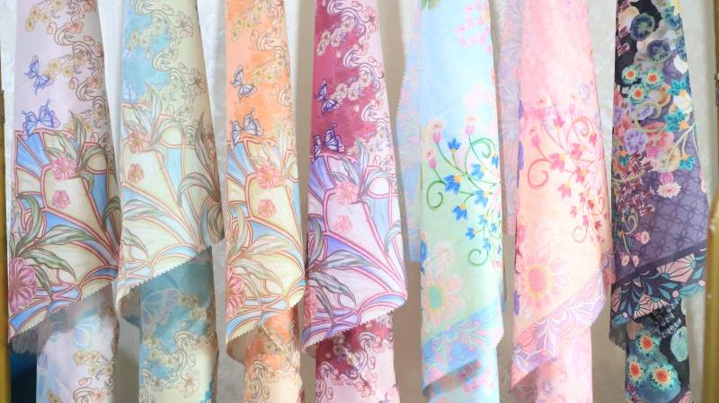 “Salameena sendiri memilih jenis bahan dari kelas terbaik, 'voal ultrafine tryspan,' yang lembut, ringan, tidak gerah, serta dilengkapi dengan metode cutting laser yang menjamin potongan kainnya memiliki tingkat kerapian yang terjamin, bahkan menggunakan teknik printing yang berkualitas,” tambahnya.
