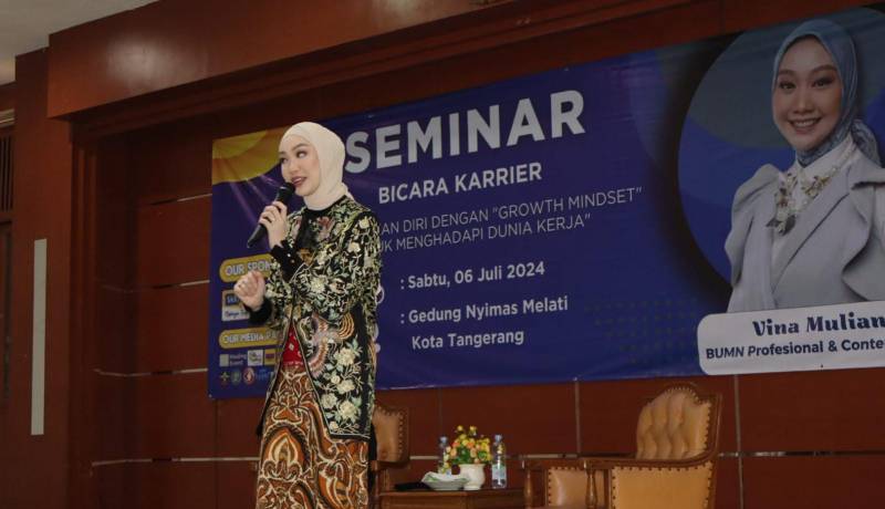 Seminar yang diikuti ratusan mahasiswa tersebut menghadirkan narasumber Vina Muliana, selaku HR Professional sekaligus content creator.