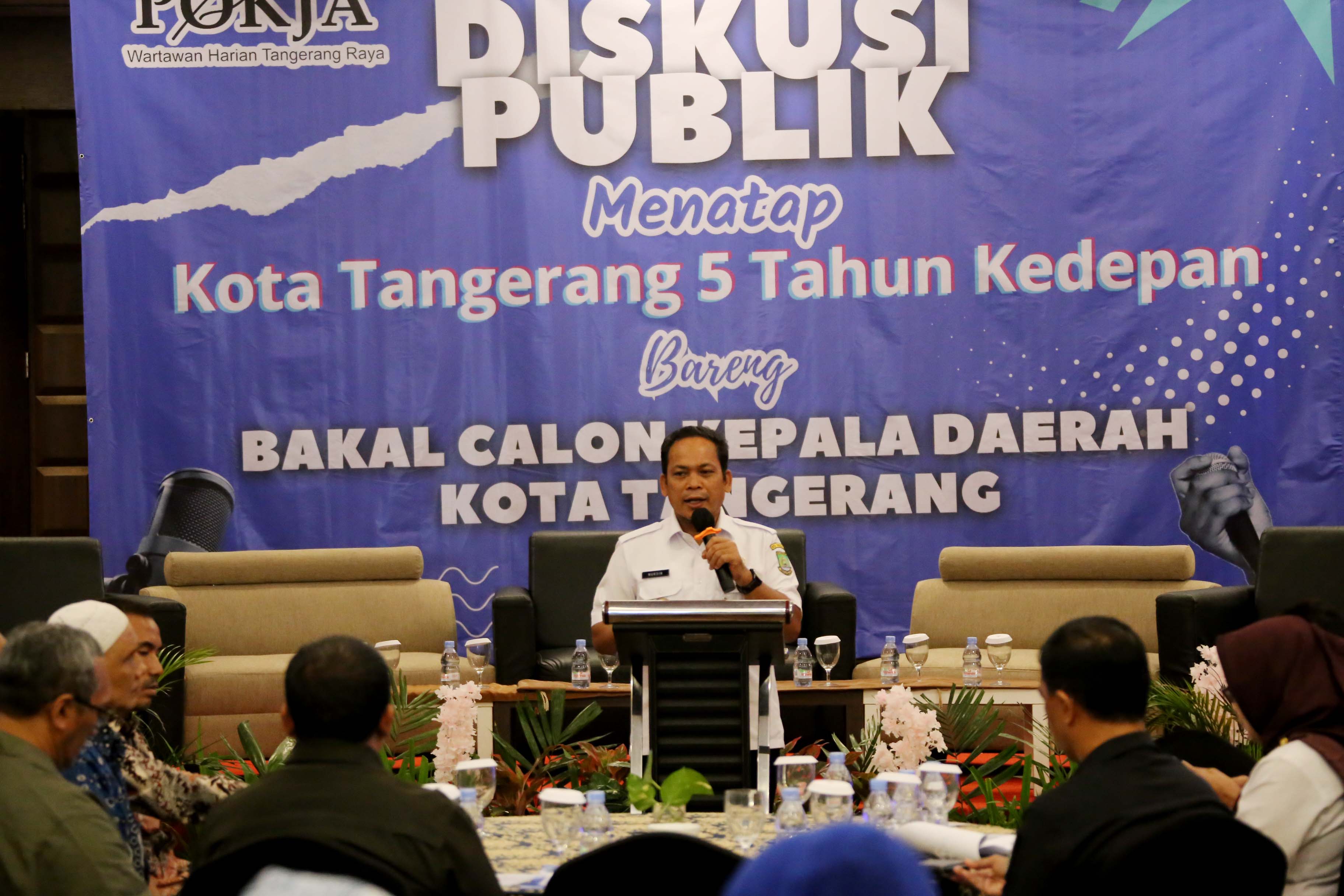 Penjabat (Pj) Wali Kota Tangerang, Dr. Nurdin, hadir dalam diskusi publik bertajuk "Menatap Lima Tahun ke Depan Kota Tangerang" yang diadakan oleh Pokja Wartawan Harian Tangerang Raya, yang berlangsung di Hotel Golden Tulip, Rabu (10/7). Diskusi ini bertujuan untuk membahas arah pembangunan Kota Tangerang lima tahun ke depan, khususnya dalam masa transisi kepemimpinan saat ini.