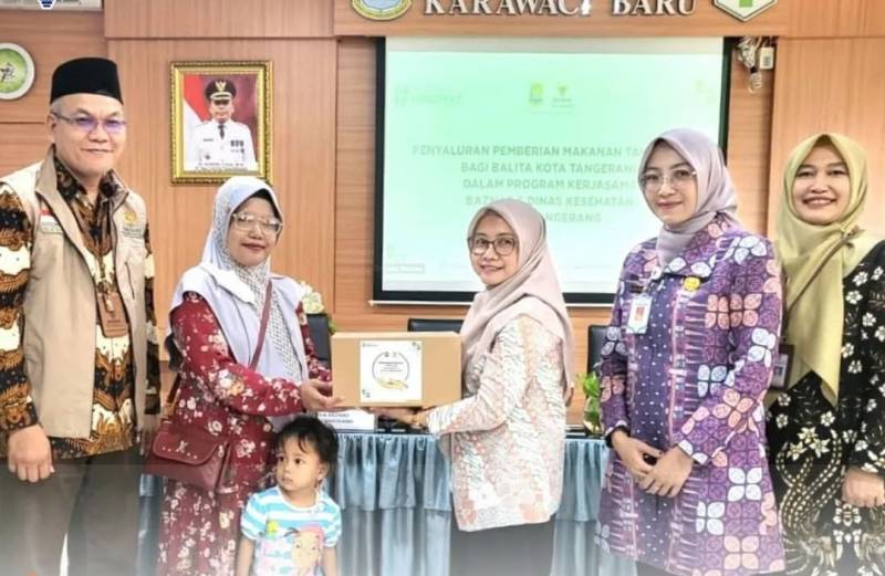 Dinas Kesehatan (Dinkes) bersama Badan Amil Zakat Nasional (BAZNAS) Kota Tangerang menyerahkan bantuan Pemberian Makanan Tambahan (PMT) bagi balita gizi kurang.