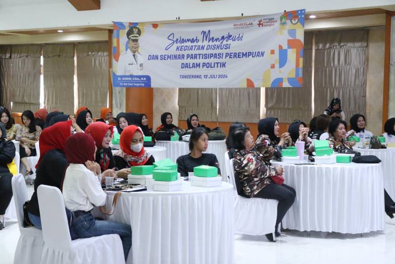 Penjabat (Pj) Wali Kota Tangerang, Dr. Nurdin, memberikan dukungan penuh terhadap upaya peningkatan keterlibatan perempuan dalam dunia politik. Hal tersebut disampaikannya saat menghadiri Diskusi dan Seminar Partisipasi Perempuan dalam Politik yang diselenggarakan oleh Badan Kesatuan Bangsa dan Politik (Kesbangpol) Kota Tangerang, yang berlangsung di ruang Al-Amanah, Puspem, Jumat (12/7).