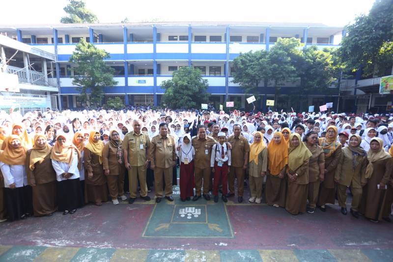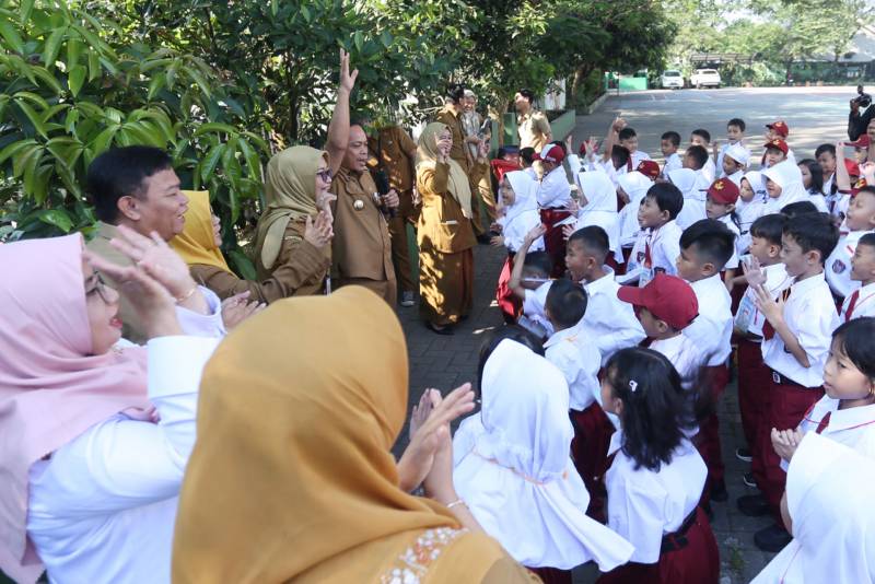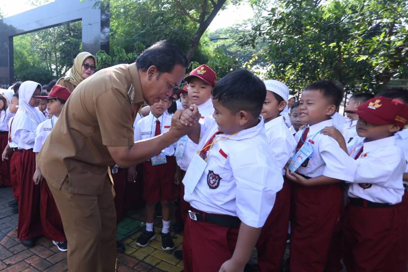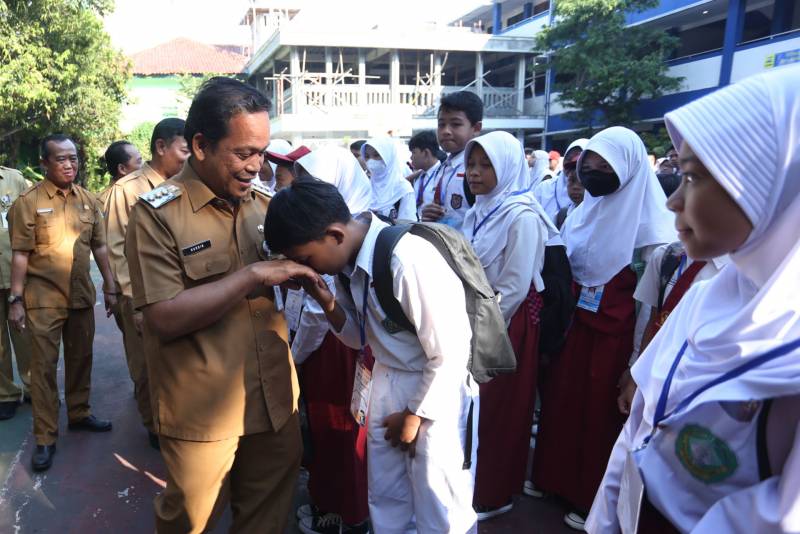Hari pertama masuk sekolah, Penjabat (Pj) Penjabat Wali Kota Tangerang Dr. Nurdin menyempatkan diri untuk meninjau pelaksanaan Masa Pengenalan Lingkungan Sekolah (MPLS) di SMP 4 kota Tangerang dan SD 4 dan 5 Sukasari.