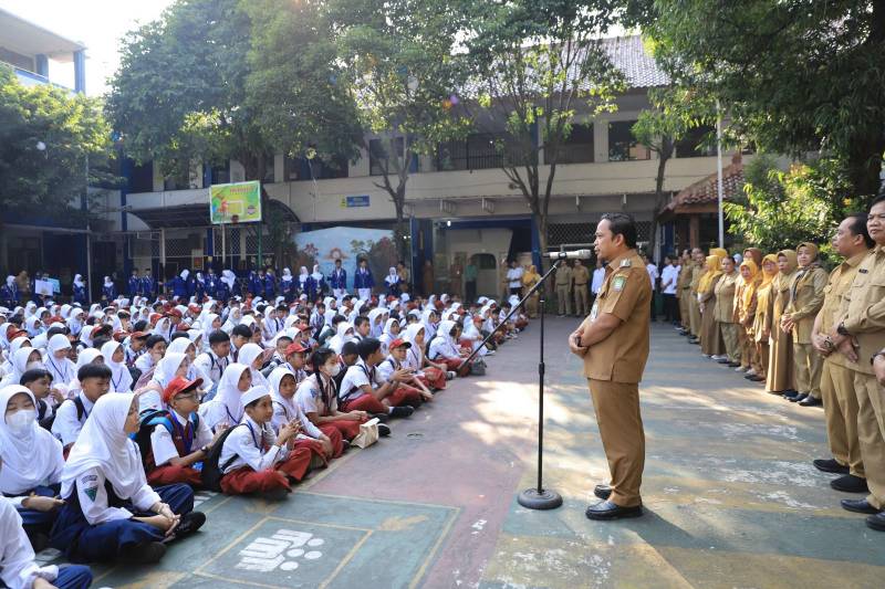 Penjabat (Pj) Wali Kota Tangerang Dr. Nurdin turut hadir melakukan monitoring khususnya pada siswa baru yang melaksanakan Masa Pengenalan Lingkungan Sekolah (MPLS). Ia mengatakan, monitoring ini untuk memastikan pelaksanaan sekolah di hari pertama berjalan lancar.