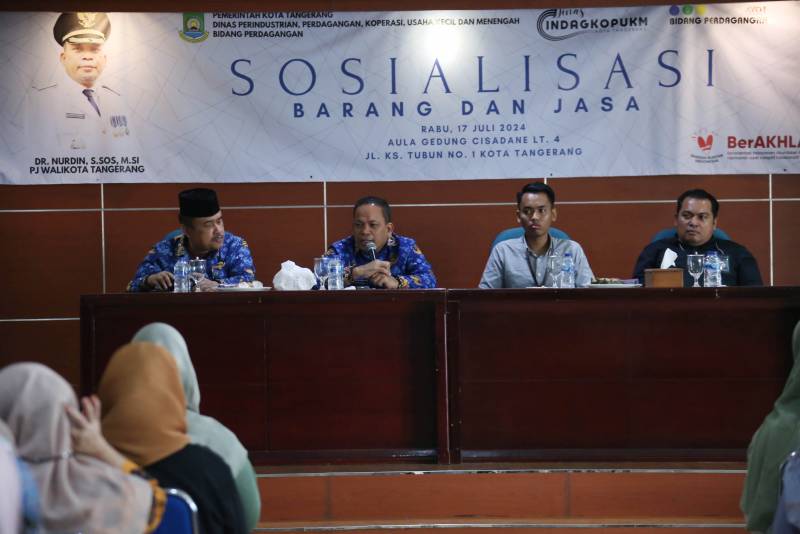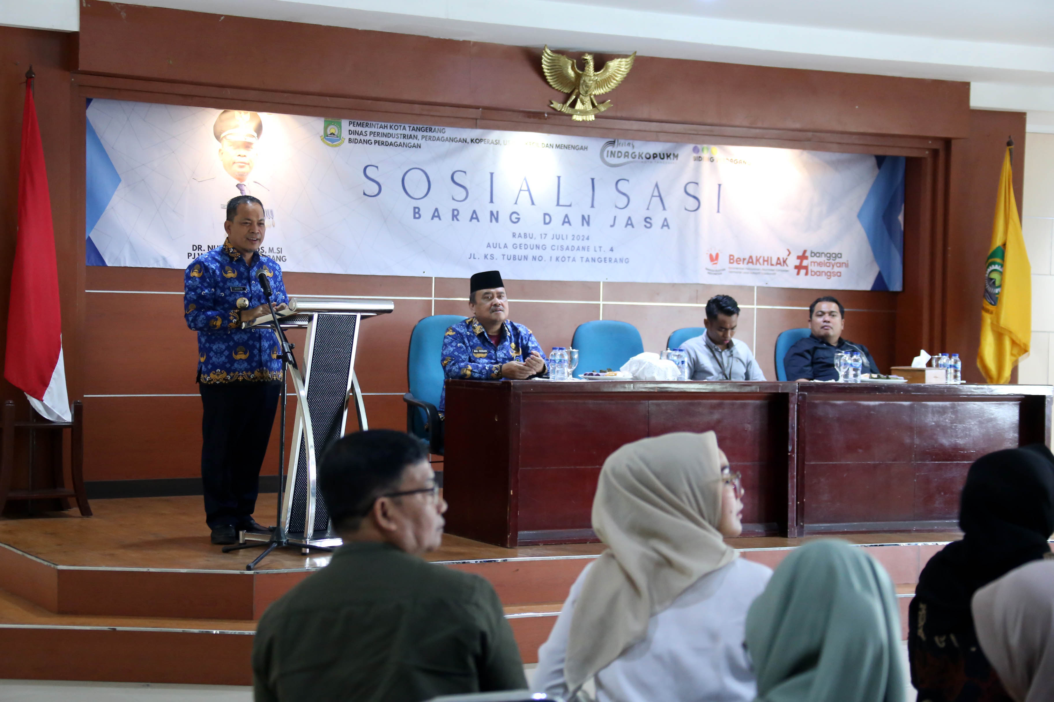 Penjabat (PJ) Wali Kota Tangerang, Dr. Nurdin, membuka kegiatan Sosialisasi Barang dan Jasa yang ditujukan bagi para pelaku Usaha Mikro, Kecil, dan Menengah (UMKM) serta pelaku usaha Warung Kita yang diselenggarakan oleh Dinas Perindustrian, Perdagangan, Koperasi dan UKM (Disperindagkop UKM) di Gedung Cisadane, Rabu (17/7).