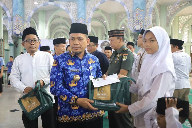 Hari terakhir Festival Al-A'zhom Kota Tangerang ke-11, Badan Amil Zakat Nasional (BAZNAS) Kota Tangerang menyalurkan santunan ke 1446 yatim dhuafa di 13 kecamatan Kota Tangerang.