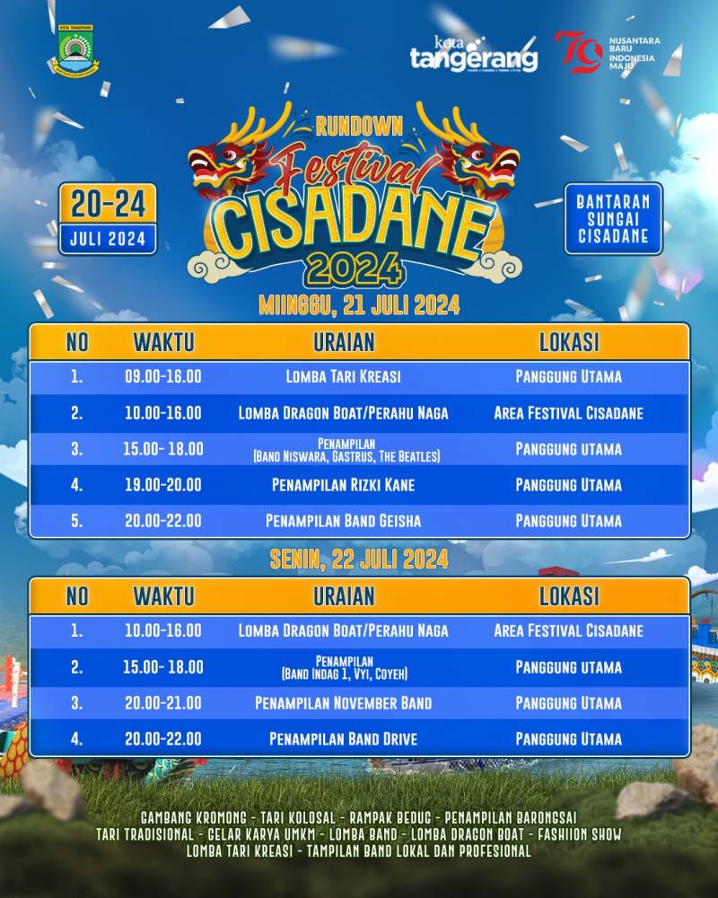 Berikut rundown Festival Cisadane Kota Tangerang 2024: