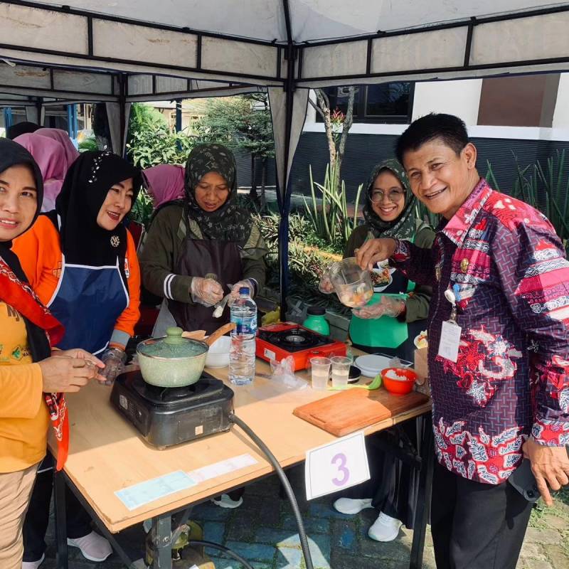 Menguatkan seluruh sektor dalam penanganan stunting, Kecamatan Jatiuwung menggelar pelatihan Tim Pelaksana dalam Penyiapan Pemberian Makanan Tambahan (PMT) Berbasis Bahan Lokal, bagi ibu hamil dan balita gizi kurang, di halaman Kecamatan Jatiuwung, Kamis (18/7/24).