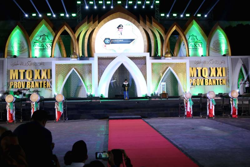 Penjabat (Pj) Wali Kota Tangerang, Dr. Nurdin, menghadiri acara Pembukaan Musabaqah Tilawatil Qur'an (MTQ) Tingkat Provinsi Banten XXI Tahun 2024, yang diselenggarakan di Arena Utama Masjid Raya Al-Bantani, KP3B, Kota Serang, pada Rabu malam, (24/7).