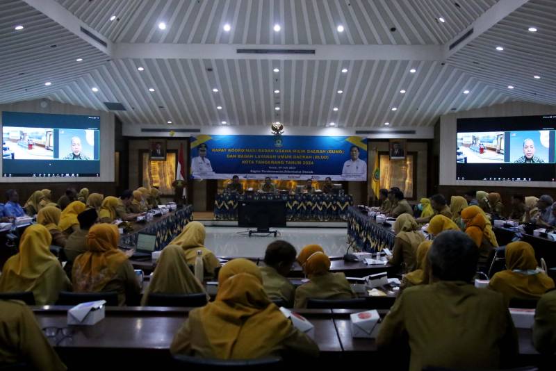 Sebagai upaya untuk meningkatkan kolaborasi dan sinergitas dalam rangka optimalisasi pelayanan kepada masyarakat sekaligus meningkatkan kontribusi dalam perekonomian di Kota Tangerang, Pemerintah Kota (Pemkot) Tangerang menggelar Rapat Koordinasi (Rakor) Badan Usaha Milik Daerah (BUMD) dan Badan Layanan Umum Daerah (BLUD) Kota Tangerang Tahun 2024, yang bertempat di Ruang Rapat Akhlakul Karimah Gedung Pusat Pemerintahan (Puspem) Kota Tangerang, Senin, (29/07).