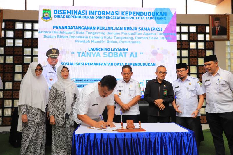 Sementara itu, Kepala Disdukcapil Kota Tangerang Irman Pujahendra menyatakan, dalam kegiatan launching Tanya Sobat AI, juga melakukan perpanjangan penandatanganan Perjanjian Kerja Sama (PKS) antara Disdukcapil Kota Tangerang dengan Pengadilan Agama Tangerang terkait program Udahan.