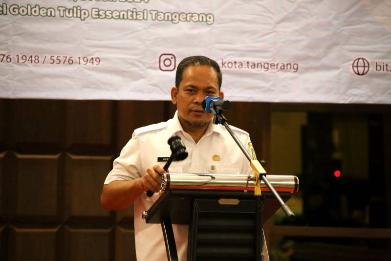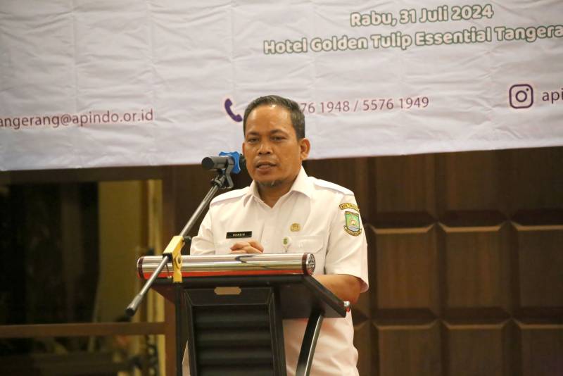 Penjabat (Pj) Wali Kota Tangerang, Dr. Nurdin, menghadiri sekaligus membuka acara Musyawarah Kota (Muskot) VII Dewan Pimpinan Kota (DPK) Asosiasi Pengusaha Indonesia (Apindo) Kota Tangerang, yang digelar di Hotel Golden Tulip Essential Tangerang, Rabu, (31/07).