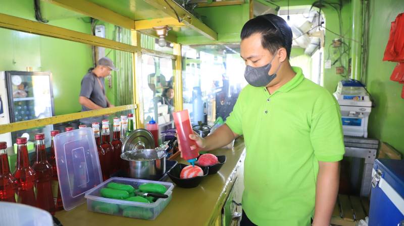 Es Pisang Ijo Ala Mama tentu memiliki cita rasa yang autentik dari tempat yang lainnya. Tekstur bubur sumsumnya yang lembut dan sirop yang khas membuat pelanggan kecanduan dan bikin kangen untuk datang kembali.