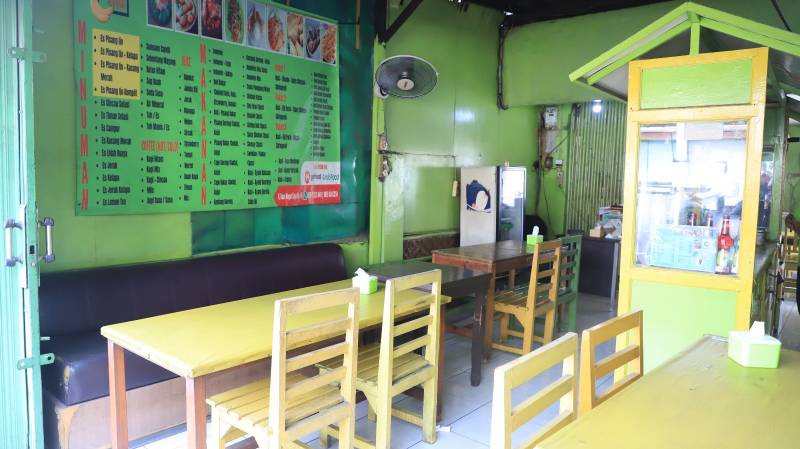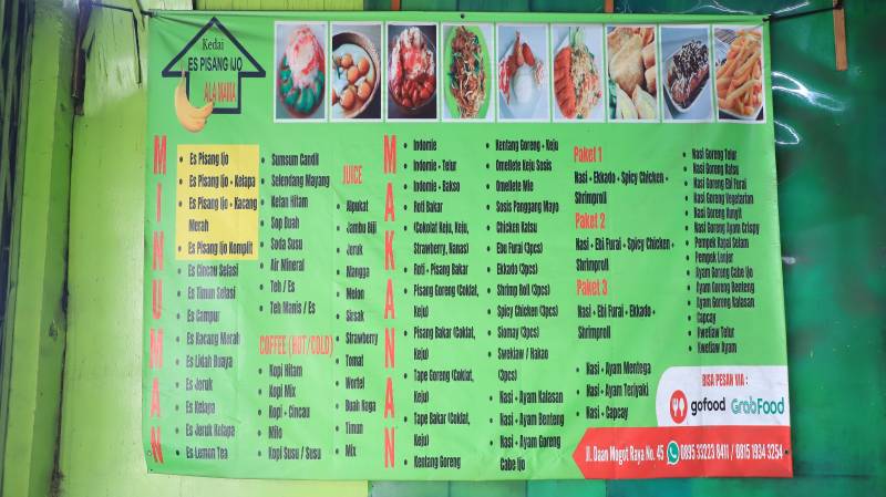 “Kalau untuk minuman di sini ada es pisang ijo, dengan memiliki banyak toping seperti toping kelapa, kacang merah, atau kalau mau dua-duanya pisang ijo komplit namanya. Untuk makanan, best sellernya ada nasi goreng kecap, nasi goreng katsu, nasi goreng kunyit, dan untuk dessertnya ada roti bakar dan pisang goreng,” ujarnya.
