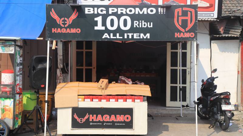 Owner Hagamo Sneakers Fathur Muin mengatakan, Hagamo Sneakers berdiri sejak 2020 yang merupakan produk asli Kota Tangerang. Untuk outletnya, beralamat di Jalan Poris Indah, Cipondoh Indah, Kecamatan Cipondoh, Kota Tangerang. Tempat ini buka mulai pukul 10.00 – 22.00 WIB.