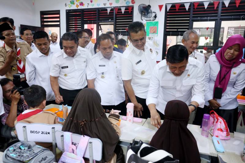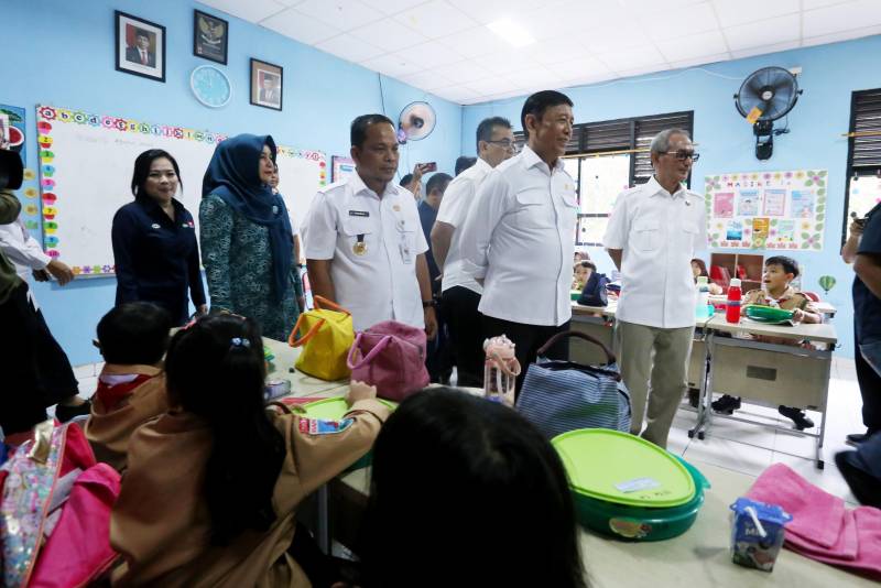 Ketua Dewan Pertimbangan Presiden (Wantimpres), Jenderal TNI (Purn) Wiranto, mengapresiasi pelaksanaan Uji Coba Makan Bergizi Gratis (MBG) di Kota Tangerang, saat hadir meninjau pelaksanaan uji coba MBG tersebut di SD Negeri Sukasari 4 & 5 Kota Tangerang, Rabu, (07/08).