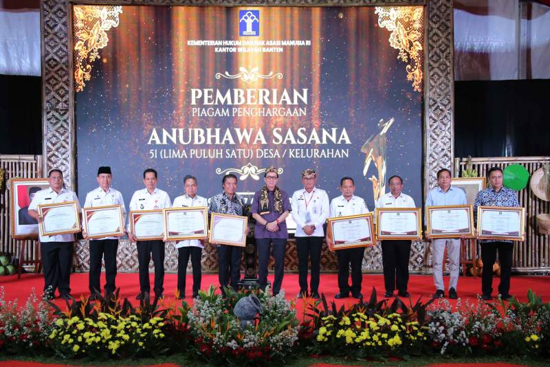 Penjabat (Pj) Wali Kota Tangerang, Dr. Nurdin, menerima penghargaan Anubhawa Sasana dari Kementerian Hukum dan Hak Asasi Manusia (HAM) Republik Indonesia (Kemenkumham RI) Kantor Wilayah (Kanwil) Provinsi Banten atas dukungan dan pembinaan terhadap 10 (Sepuluh) Kelurahan Binaan Sadar Hukum, menuju Kelurahan Sadar Hukum.