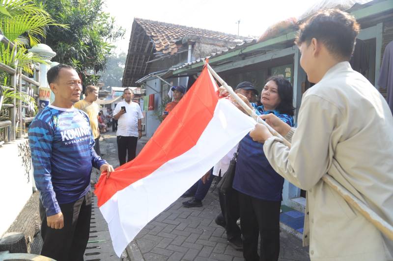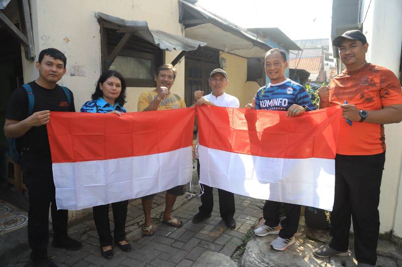 Dinas Komunikasi dan Informatika (Diskominfo) Kota Tangerang juga ikut serta dalam pembagian bendera, di Kelurahan Grendeng, Kecamatan Karawaci, Kota Tangerang.