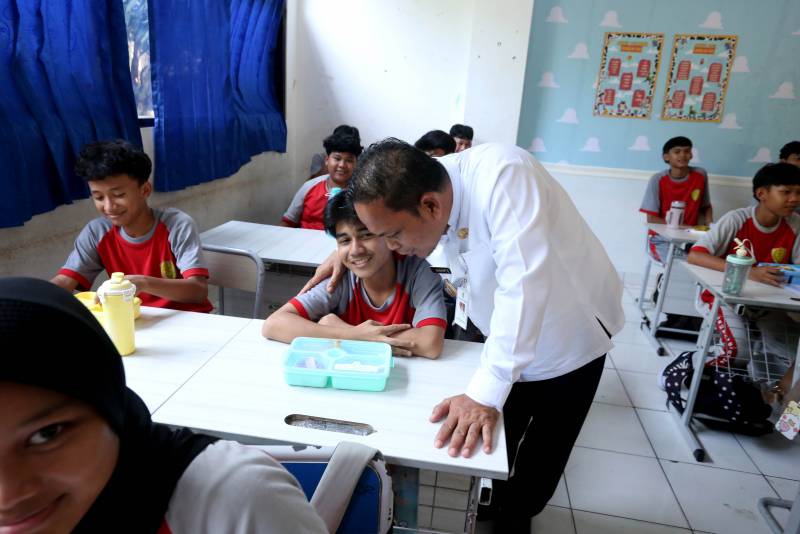 Saat meninjau uji coba Program MBG yang dilaksanakan di SMPN 32 Cipondoh dengan menu nasi, ayam teriyaki, sayur buncis dan buah, Dr. Nurdin, berdialog langsung dengan para siswa untuk mengetahui kesan mereka terhadap makanan yang disajikan.