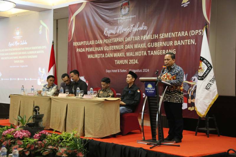 Penjabat (Pj) Wali Kota Tangerang, Dr. Nurdin, hadir dalam Rapat Pleno Rekapitulasi yang diselenggarakan oleh Komisi Pemilihan Umum (KPU) Kota Tangerang, di Days Hotel and Suites Kota Tangerang, Sabtu (10/08).