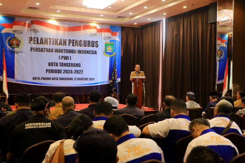 Demikian disampaikan, Penjabat (Pj) Wali Kota Tangerang, Dr. Nurdin, saat menyampaikan sambutannya dalam acara pelantikan Pengurus Persatuan Wartawan Indonesia (PWI) Kota Tangerang Periode 2024-2027, yang berlangsung di Hotel Pakons Prime, Senin (12/8).