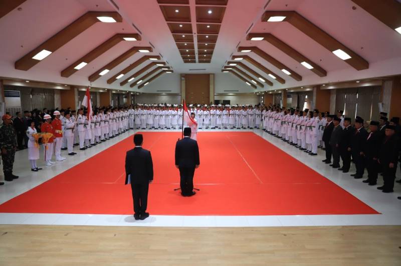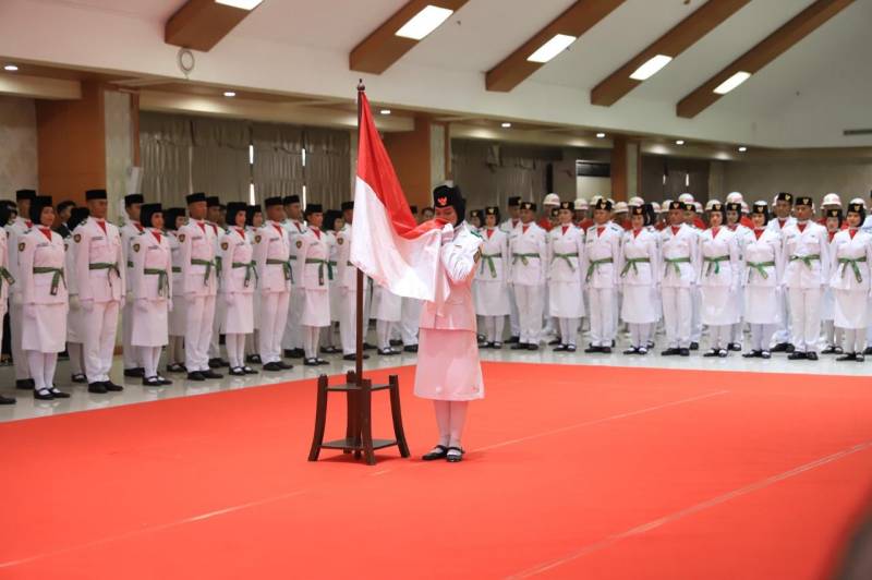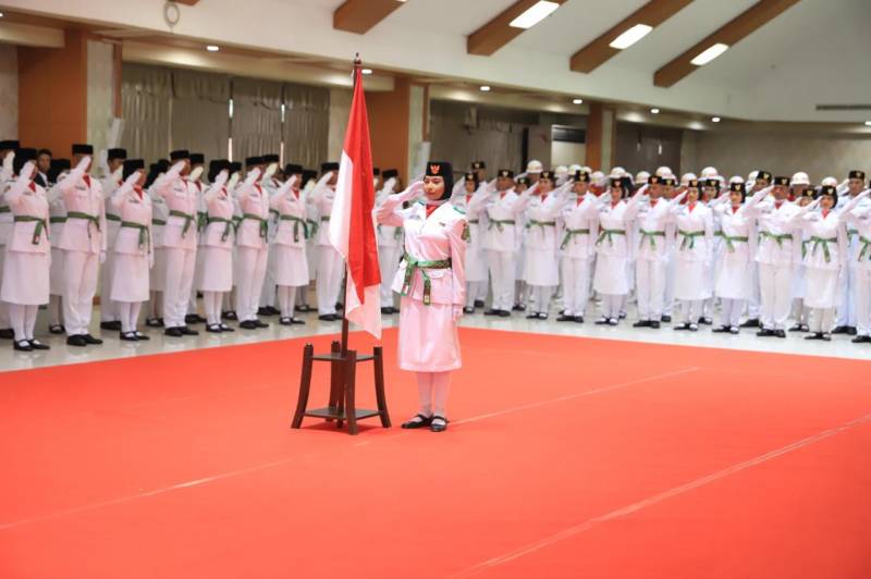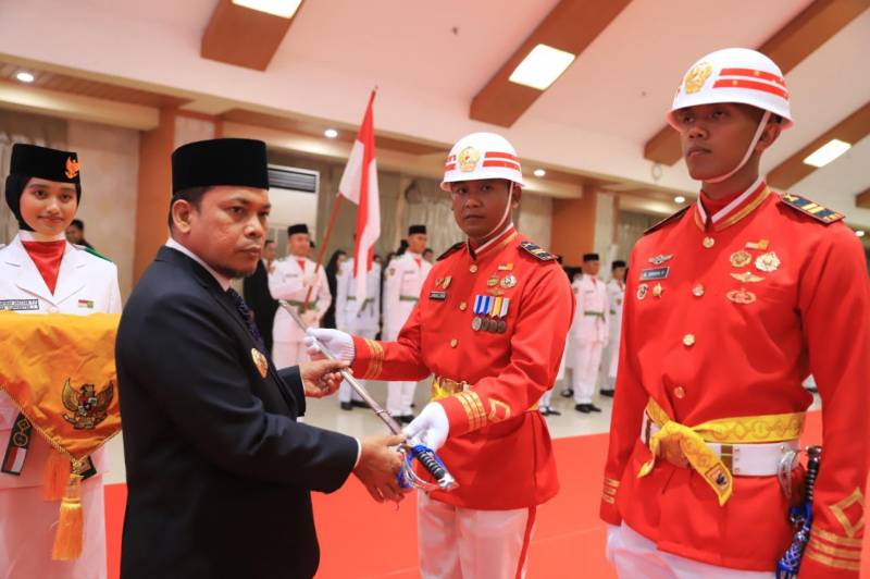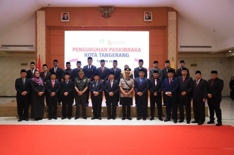 Penjabat (Pj) Wali Kota Tangerang Dr. Nurdin secara resmi mengukuhkan 50 anggota Pasukan Pengibar Bendera Pusaka (Paskibraka) Kota Tangerang tahun 2024, di Aula Al Amanah, Pusat Pemerintah (Puspem) Kota Tangerang, Kamis (15/8/24).