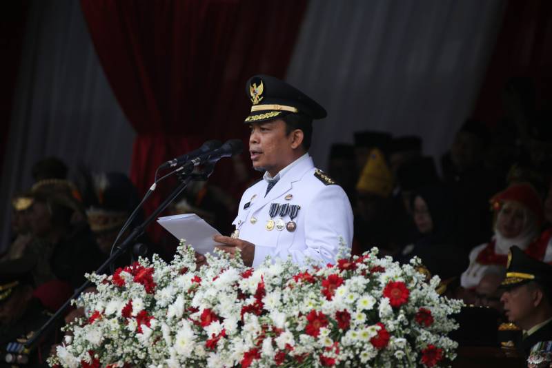 "Alhamdulillah, saya liat masyarakat cukup ramai untuk menyaksikan sekaligus mengikuti perayaan HUT RI, saya mengucapkan terima kasih atas partisipasi masyarakat yang luar biasa dalam upacara peringatan kemerdekaan kali ini ," ungkap Pj.