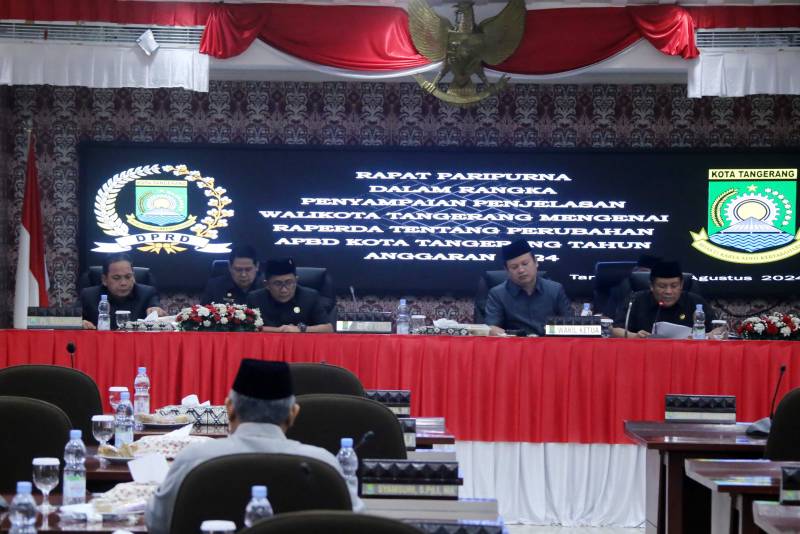 Penjabat (Pj) Wali Kota Tangerang, Dr. Nurdin, menyampaikan Rancangan Peraturan Daerah (Raperda) tentang Perubahan APBD 2024, kepada Dewan Perwakilan Rakyat Daerah (DPRD) Kota Tangerang, yang berlangsung di Ruang Rapat Paripurna, Selasa, (20/08).
