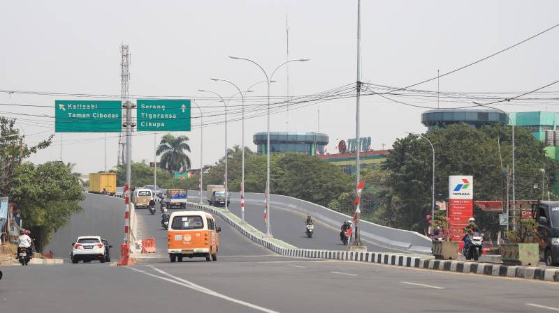 Jalan Utama Flyover Taman Cibodas Kota Tangerang baru saja tuntas direnovasi oleh Kementerian Pekerjaan Umum dan Perumahan Rakyat (PUPR). Sempat ditutup setahun terakhir, jalur utama yang lintas provinsi (Kota Tangerang-Serang) tersebut kembali dibuka.