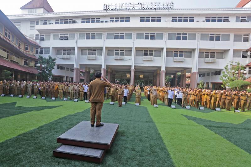 Demikian disampaikan Pj Wali Kota dalam amanatnya saat bertindak sebagai pembina dalam Apel Pegawai di Lingkungan Pemkot yang digelar di Kawasan Puspem Kota Tangerang, Senin Pagi, (02/09/2024).