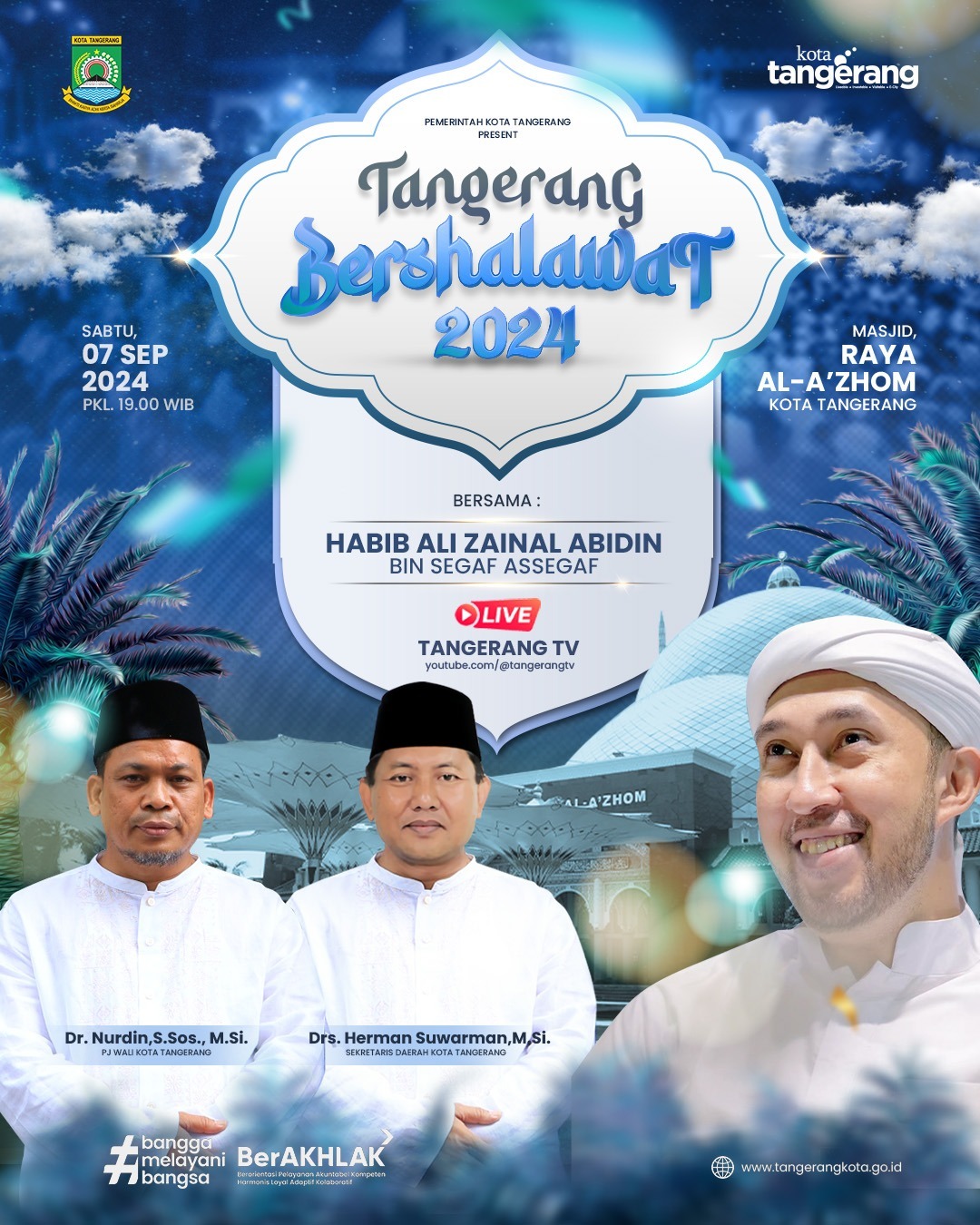 Pemerintah Kota (Pemkot) Tangerang kembali menggelar Tangerang Bershalawat yang dibuka untuk umum atau secara gratis, di halaman Masjid Raya Al-A’zhom Kota Tangerang, pada Sabtu (7/9/24) mendatang.