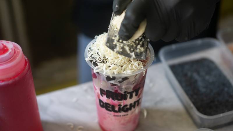 Salah satu minuman yang laris antara lain smoothies. Ini adalah minuman kental dingin berbahan buah segar dengan toping krimer.
