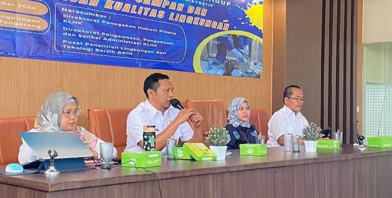 Terdapat dua narasumber yang dihadirkan, yaitu dari Direktorat Penegakan Hukum Pidana Kementerian Lingkungan Hidup dan Kehutanan (KLHK) dan Pusat Penelitian Lingkunhan dan Teknologi Bersih Badan Riset Inovasi Nasional (BRIN), serta Kepala Bidang Kebersihan Dinas Lingkungan Hidup Kota Tangerang.