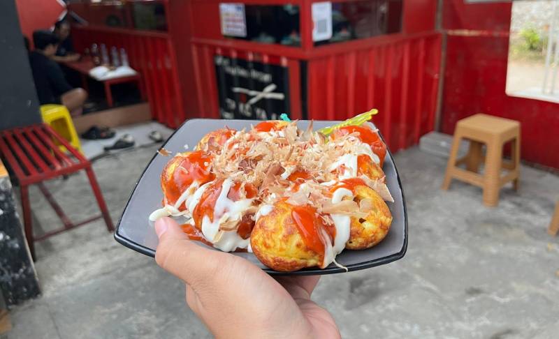 Dengan harga seribu rupiah per pcs, pembeli sudah bisa menikmati takoyaki dengan berbagai isian. Mulai dari sosis, bakso, salmon, crab stik, keju, hingga gurita.