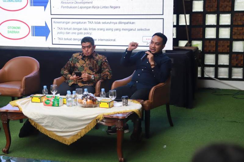 “Maka, pemahaman aturan-aturan yang berlaku harus terus disosialisasikan secara update. Sehingga, dapat memperlancar dalam pengurusan perizinan penggunaan tenaga kerja asing, melalui aplikasi pelayanan pengunaan TKA Online dari Kementerian Ketenagakerjaan Republik Indonesia,” papar Sugihharto, usai membuka acara.