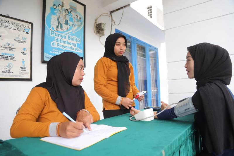Sebelum mengikuti senam, para ibu hamil akan diarahkan untuk melakukan tahapan tensi darah, pengukuran berat badan, serta pengukuran tinggi badan, agar petugas kader dapat melihat progres perkembangan dan kesehatan ibu dan janin.