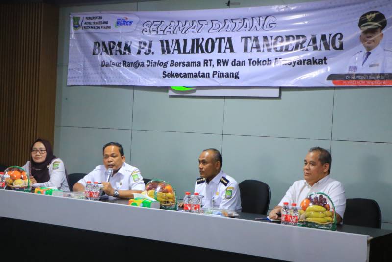Penjabat (Pj) Wali Kota Tangerang, Dr. Nurdin, menegaskan, Pemerintah Kota (Pemkot) Tangerang berkomitmen untuk terus memberikan pelayanan serta program-progam yang berpihak kepada kepentingan dan kebutuhan masyarakat. Untuk itu, Pj Wali Kota berupaya untuk terus membuka ruang untuk menampung dan menyerap aspirasi dari masyarakat Kota Tangerang melalui dialog dan diskusi dengan berbagai elemen masyarakat. Salah satunya adalah berdialog dengan para Ketua RT-RW dari tiap-tiap Kecamatan se-Kota Tangerang.