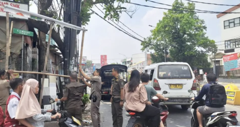 “Kami melakukan penertiban melibatkan sepuluh personel yang ada di kecamatan, untuk tujuan lokasi penertiban kali ini terdapat dua lokasi yaitu di sepanjang Jalan Bangun Reksa, Blok BB No.7 serta Jalan Barata Raya,” ujarnya.
