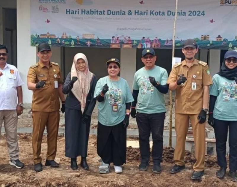 Dalam rangka menyambut Hari Kota Dunia, Kecamatan Tangerang melakukan giat penanaman pohon di area revitalisasi Pasar Anyar, Selasa (8/10/24).