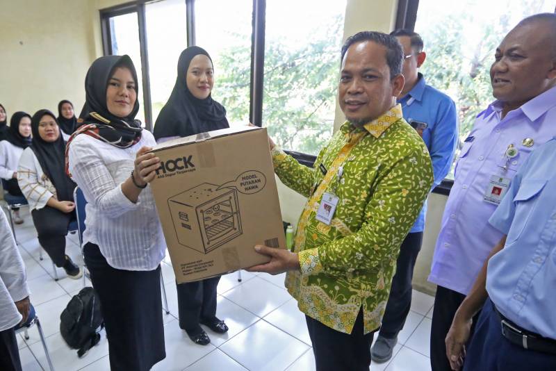 Tak hanya dibekali pelatihan, Pemkot yang bekerja sama dengan perusahaan swasta tersebut, turut memfasilitasi peralatan tata boga kepada para peserta pelatihan berupa oven, mixer dan kompor lengkap dengan gas LPG yang diserahkan secara simbolis oleh Dr. Nurdin, kepada para peserta yang telah lulus pelatihan tata boga tersebut.
