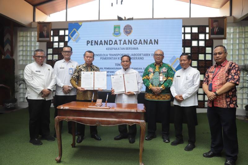 Penandatanganan MoU dilakukan antara Penjabat Wali Kota Tangerang Dr. Nurdin dengan Plt Kepala Badan Pengelolaan Transportasi Jabodetabek Suharto, di Ruang Patio, Puspem Kota Tangerang, Jumat (18/10/24).