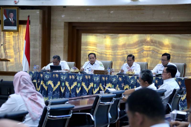 Penjabat (Pj) Wali Kota Tangerang, Dr. Nurdin, kembali memimpin Rapat Evaluasi Kewilayahan yang dihadiri oleh seluruh jajaran perangkat daerah, lurah, dan Kepala Puskesmas se-Kota Tangerang, di Ruang Akhlakul Karimah, Gedung Pusat Pemerintahan Kota Tangerang, Rabu (23/10).
