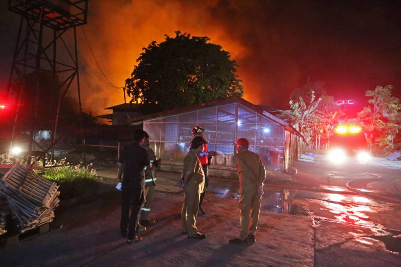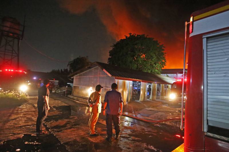 "Untuk memastikannya saya tadi juga sudah meninjau dan cek ke kampung di belakang yang letaknya berdekatan tembok dengan pabrik ini dan Alhamdulillah berkat gerak cepat petugas api tidak sampai menjalar ke perkampungan dan tidak ada masyarakat yang menjadi korban. Hanya tadi ada beberapa yang dilakukan perawatan karena menghirup asap tebal. Namun sekarang kondisi asap dan lingkungan sudah berangsur membaik." beber Pj.