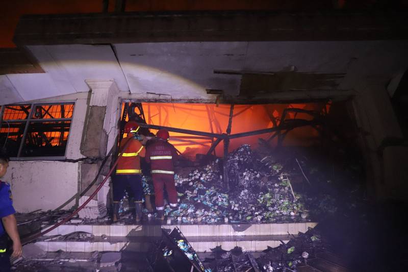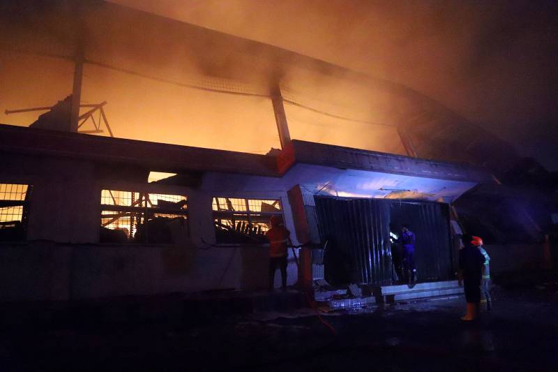 "Terlihat angin di malam ini cukup kencang, membuat api terus muncul dan membutuhkan waktu dalam proses pemadaman dengan luas lahan pergudangan dan juga bahan-bahan di lokasi yang mudah memicu api terus bermunculan," katanya.