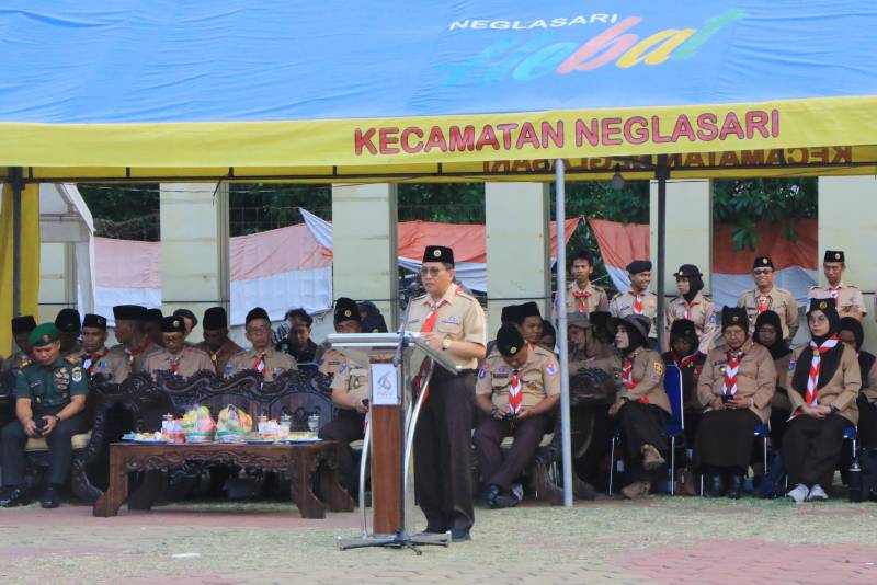 Sekretaris Daerah (Sekda) Kota Tangerang, Herman Suwarman, membuka acara Perkemahan Wirakarya Cabang (PWC) V, yang berlangsung di Alun-Alun Kecamatan Neglasari, Kota Tangerang, Rabu (30/10).