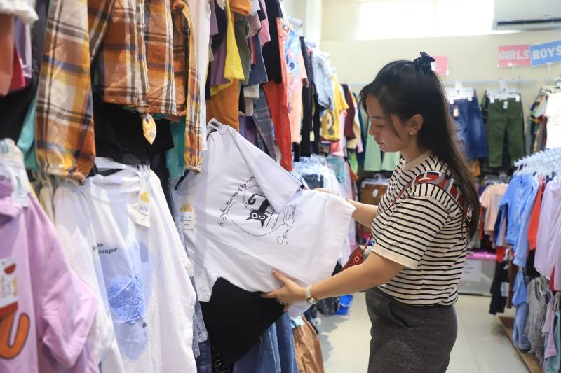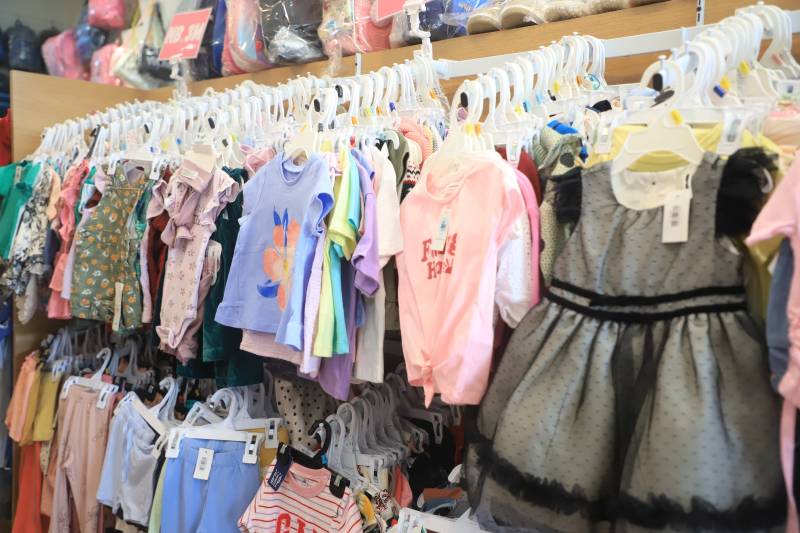 "Di sini semua lengkap untuk pakaian bayi baru lahir hingga dewasa. Ada juga ukuran usia per-bulan dan per-tahun untuk anak-anak. Kami juga menjual beberapa aksesoris seperti tas dan semacamnya. Biasanya, memang yang lebih banyak untuk pakaian anak tetapi kadang orang tuanya juga sekalian beli untuk mereka sendiri," ungkapnya.